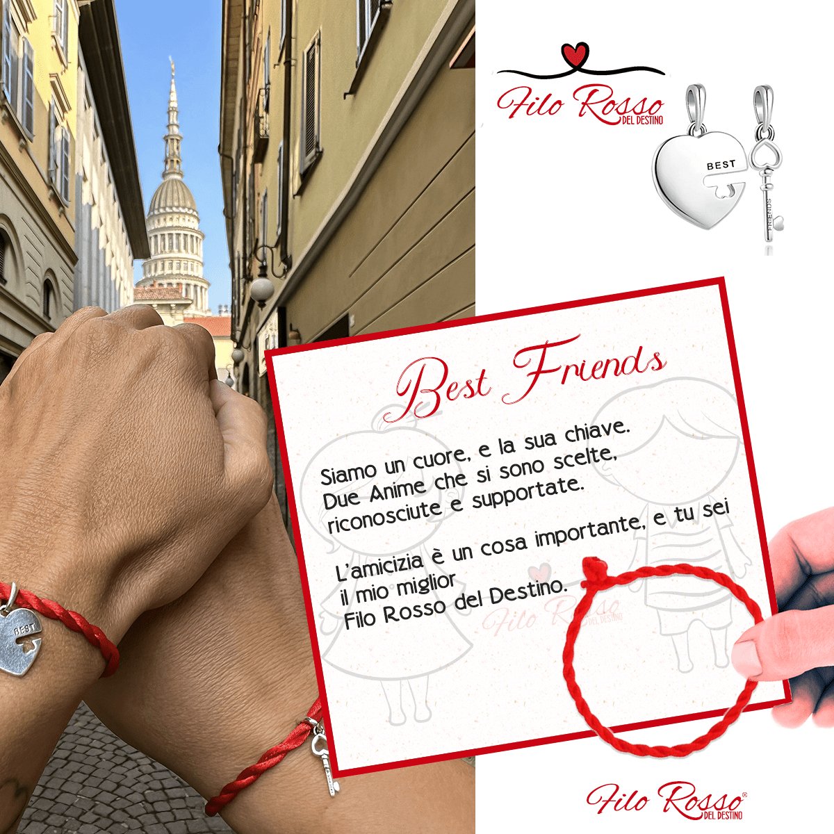 Lo charm in argento marchiato S925 “Best Friends” è un originale accessorio che puoi acquistare per personalizzare il tuo Filo Rosso del Destino. Hai mai pensato a quanto sia profondo il legame di un’amicizia vera? Indubbiamente degno del Filo Rosso più resistente che esista...