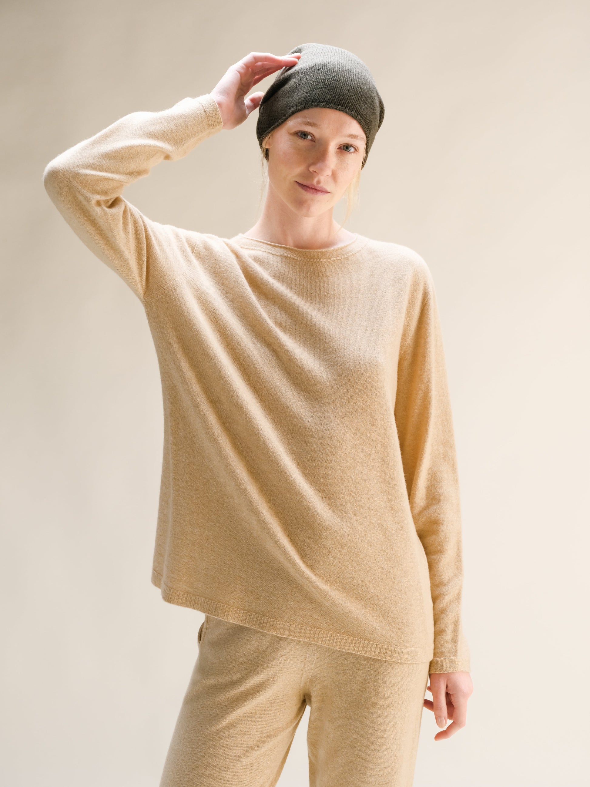 The signature "curl" neckline adds elegance to the classic crewneck silhouette. With a regular fit and crafted from our cashmere blend, it’s ideal for layering or wearing alone.