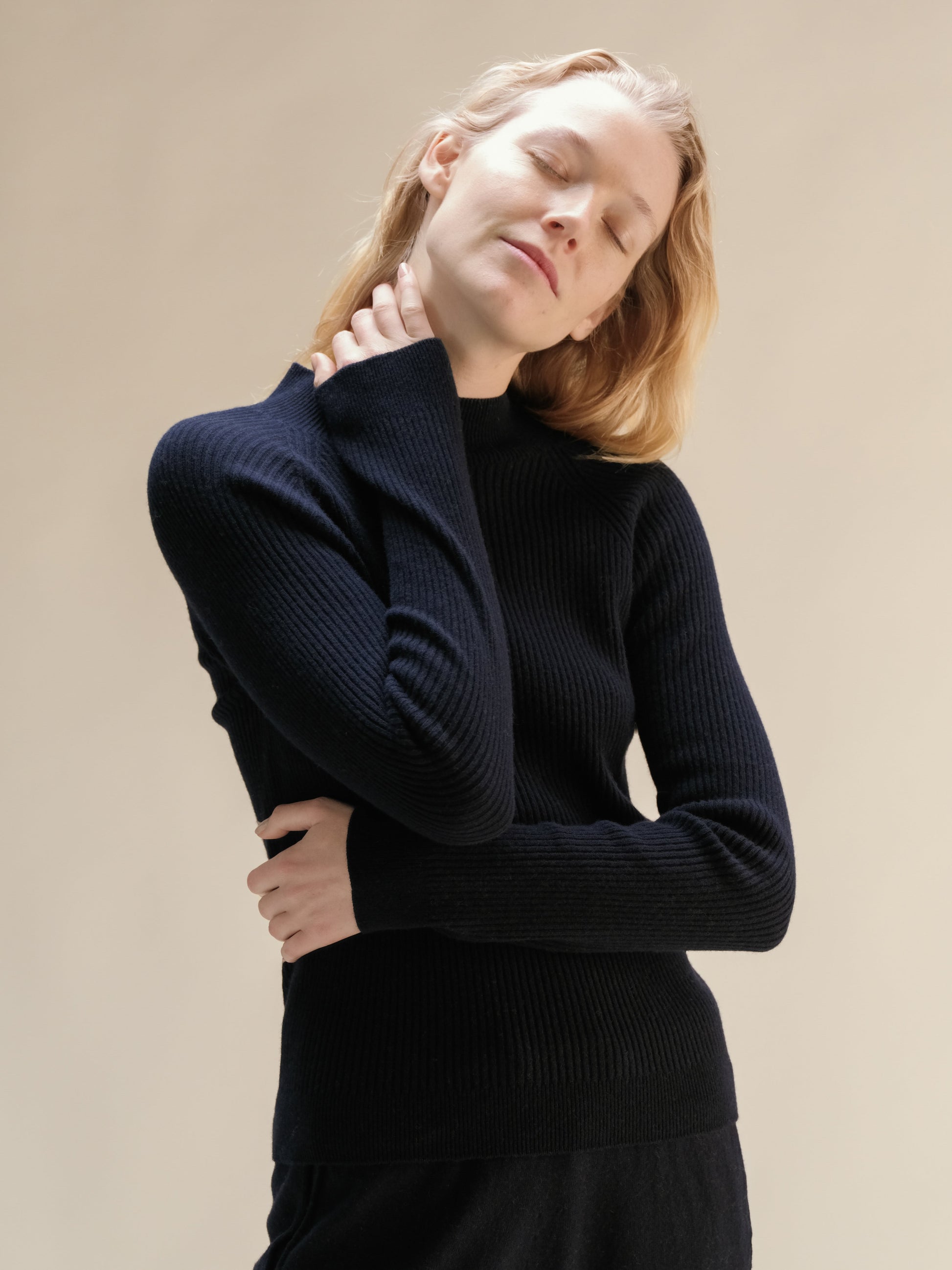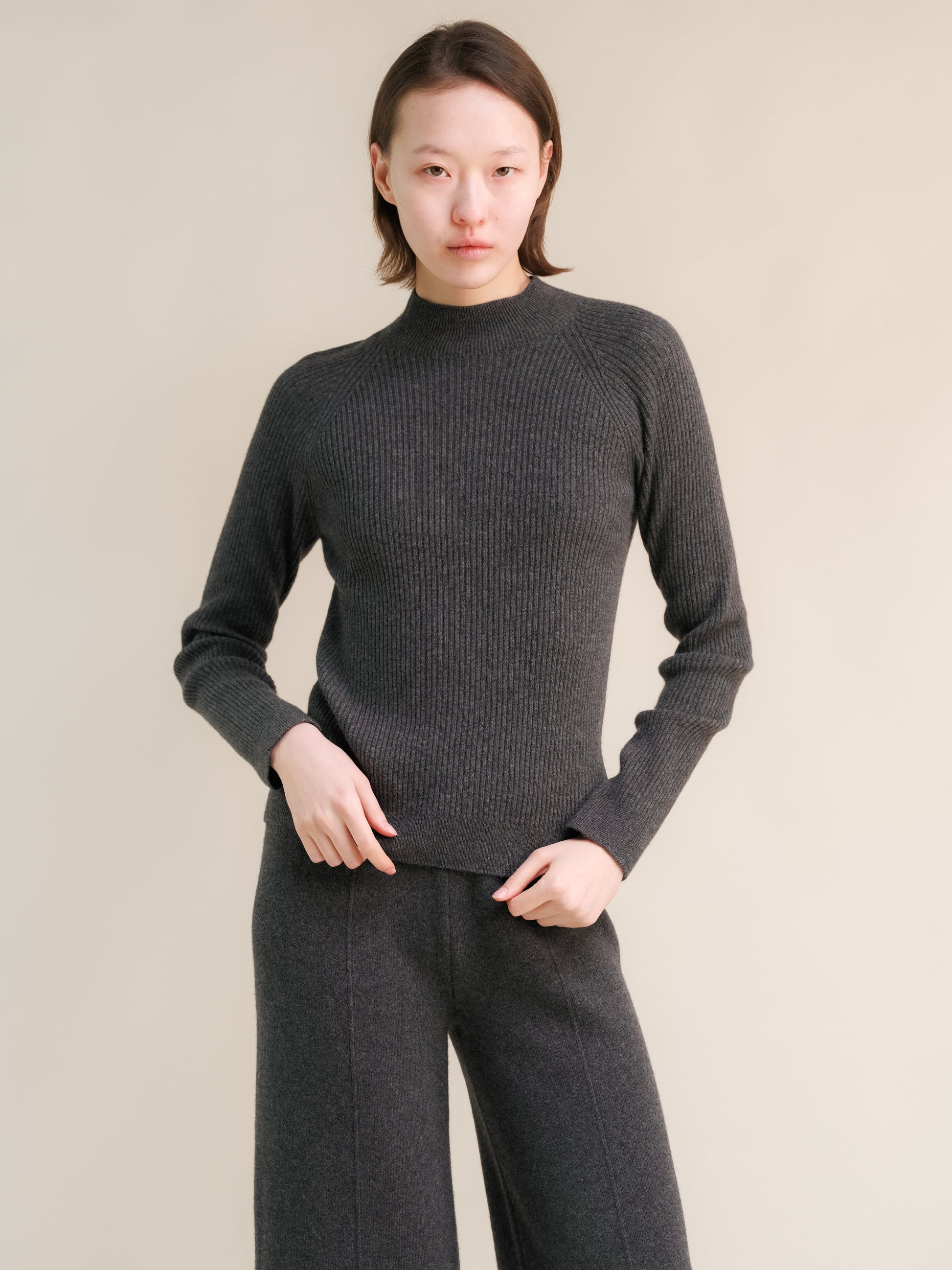 Cashmere Mix Ribbed Mock Neck Sweater (3D-Knit)