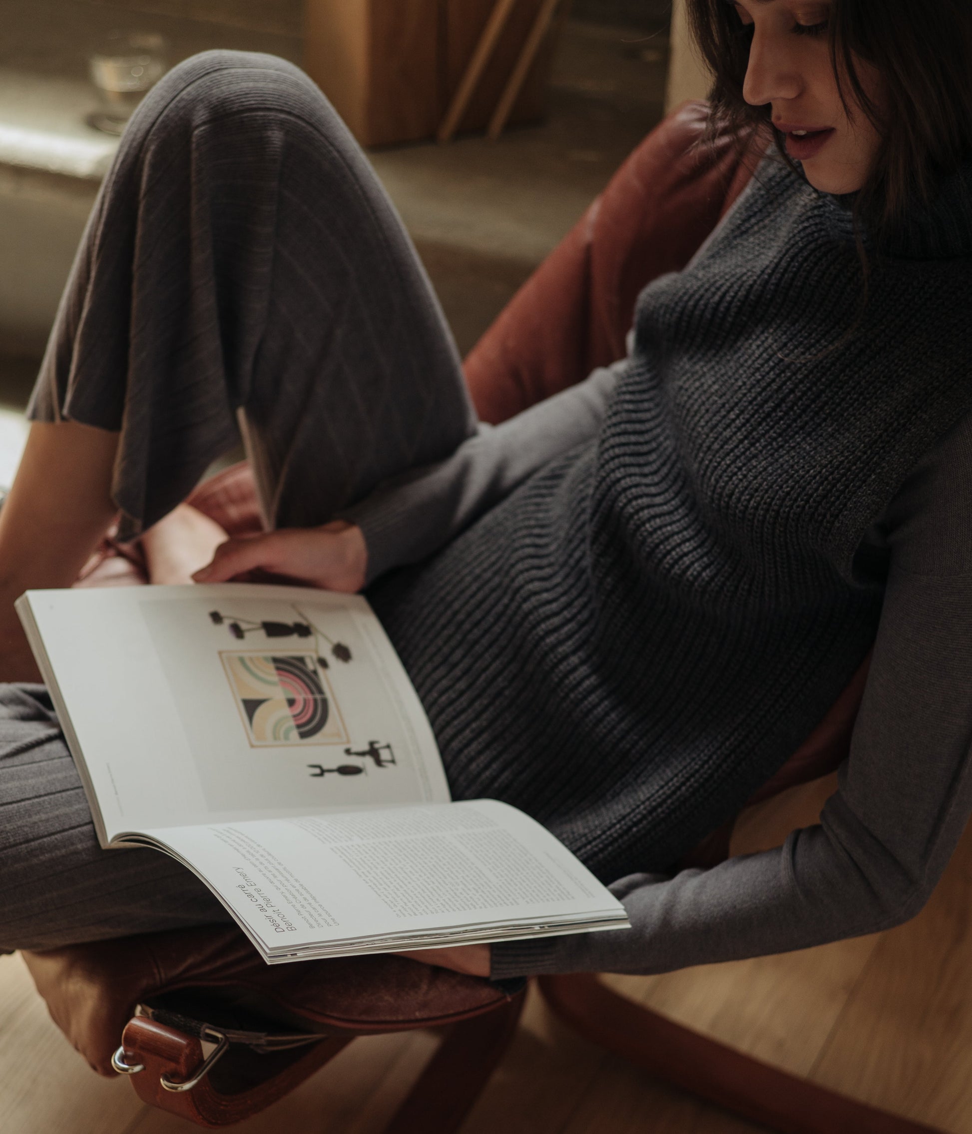 Crafted using a refined multi-thread half-cardigan rib technique, this sleeveless tunic offers a graceful silhouette with its high neckline and minimalist cut. A versatile piece, it’s ideal for layering or wearing solo, adding understated elegance to any look.