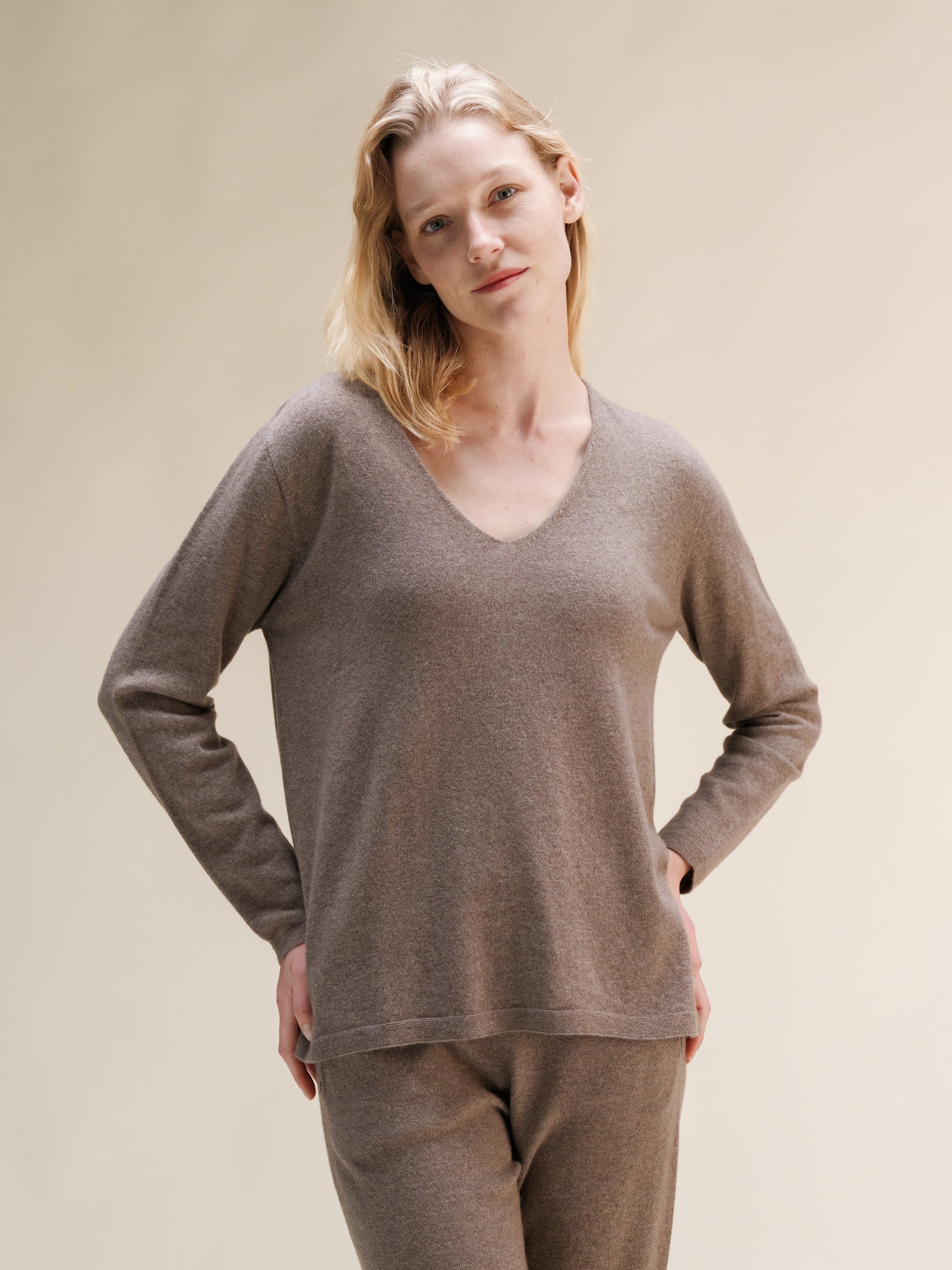 An essential V-neck sweater designed to elevate your everyday style. With a clean neckline and subtle finishing details, it merges timeless simplicity with modern craftsmanship—an ideal foundation for a refined wardrobe.