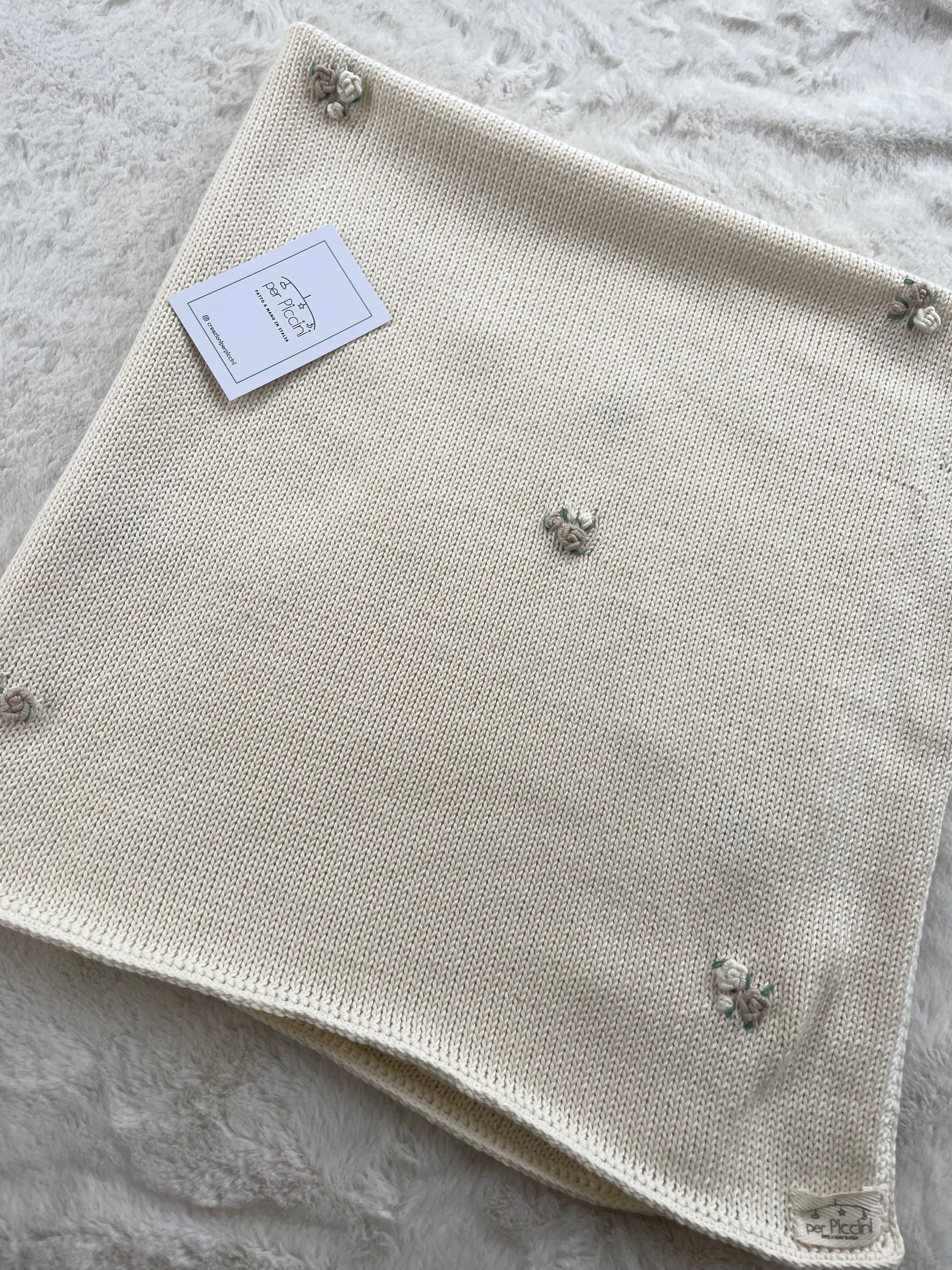 Avvolgi il tuo piccino in questa morbidissima copertina in pura lana merinos extrafine con delle delicate roselline ricamate a mano. Morbida e leggera, è perfetta per la culla del tuo bebè. Un tocco di dolcezza e stile per il suo sonno.