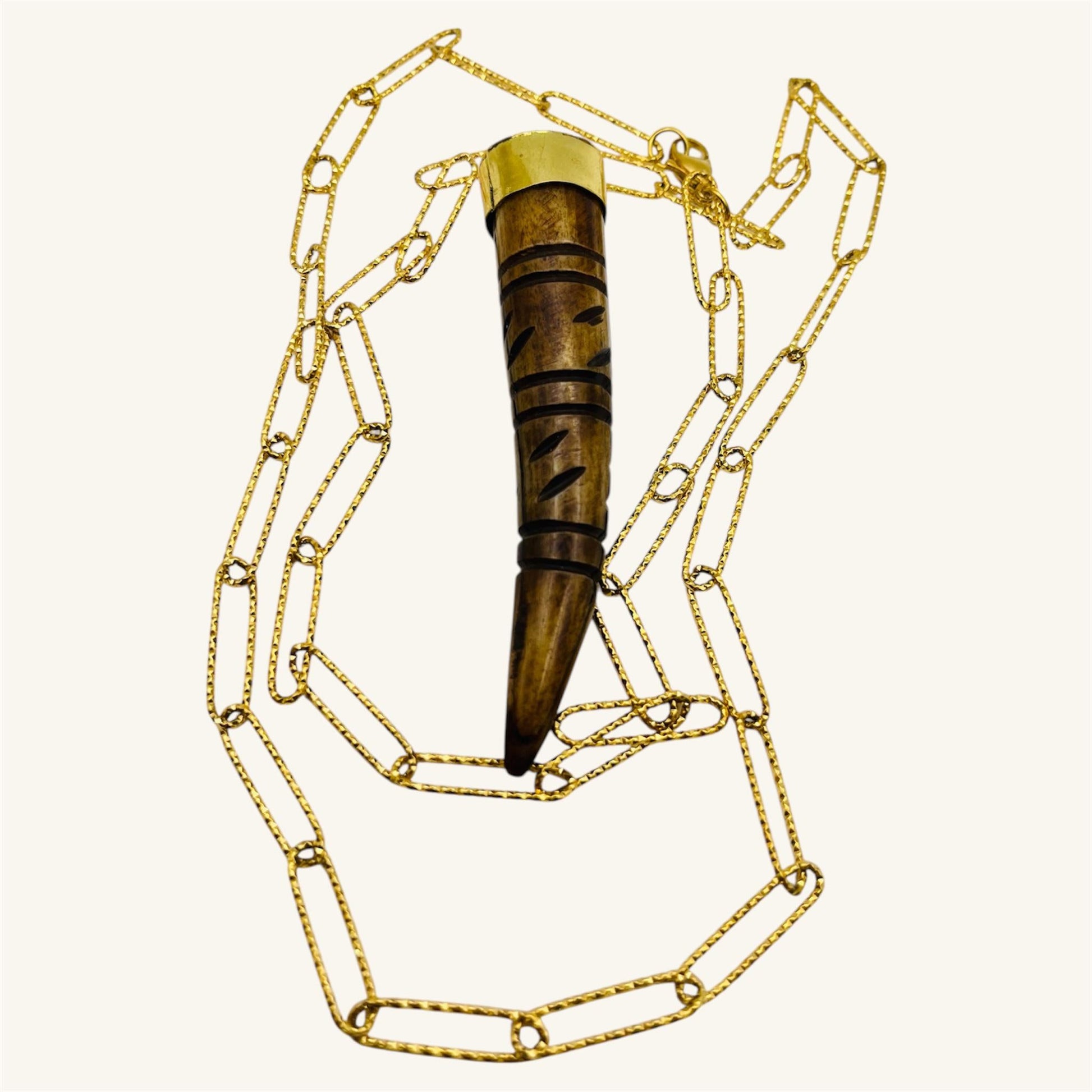 - ✔ Hand-carved horn-style pendant with bold tribal carvings
