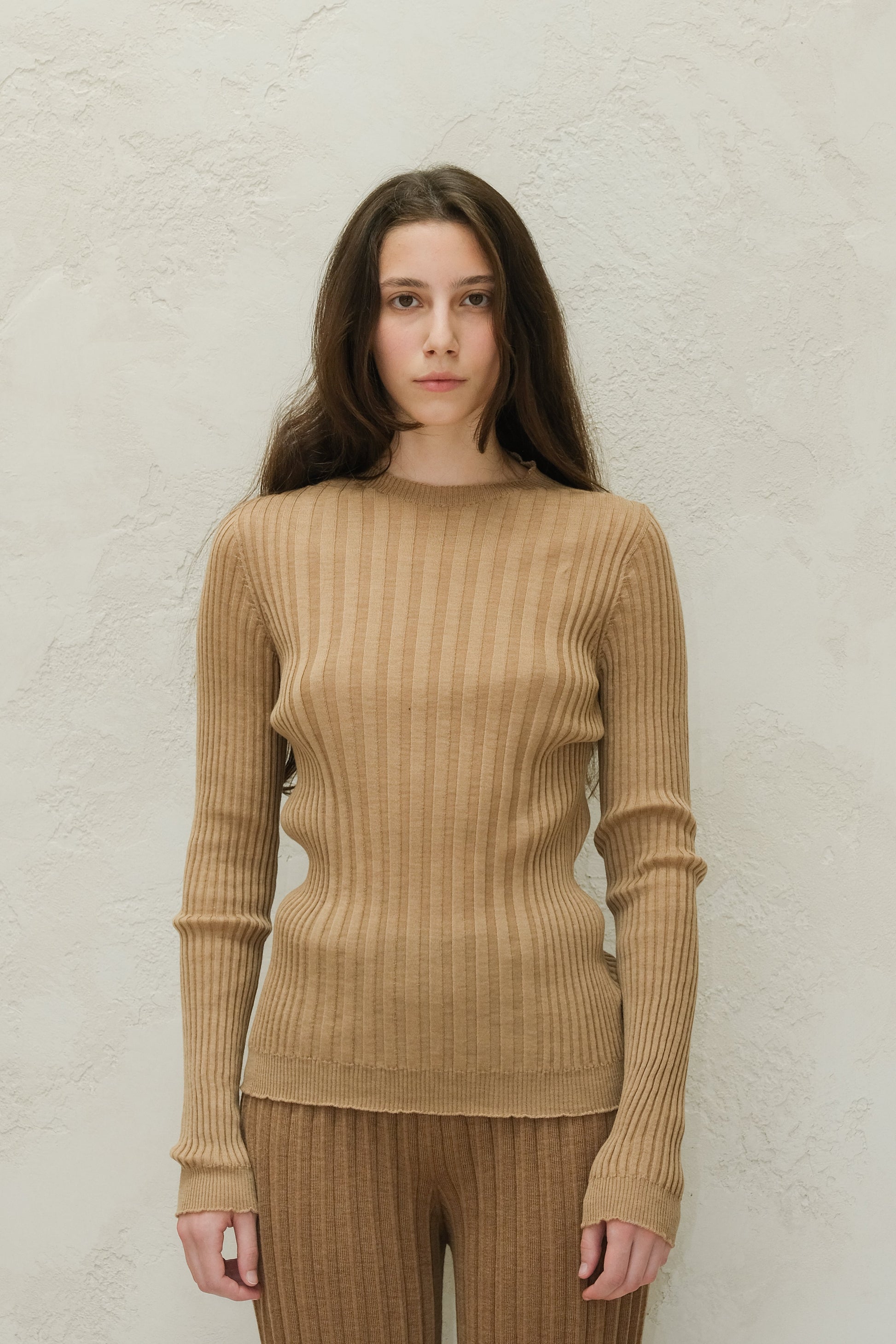 A play of rib variations adds subtle distinction to a clean silhouette—soft, breathable, and ideal for layering across seasons.