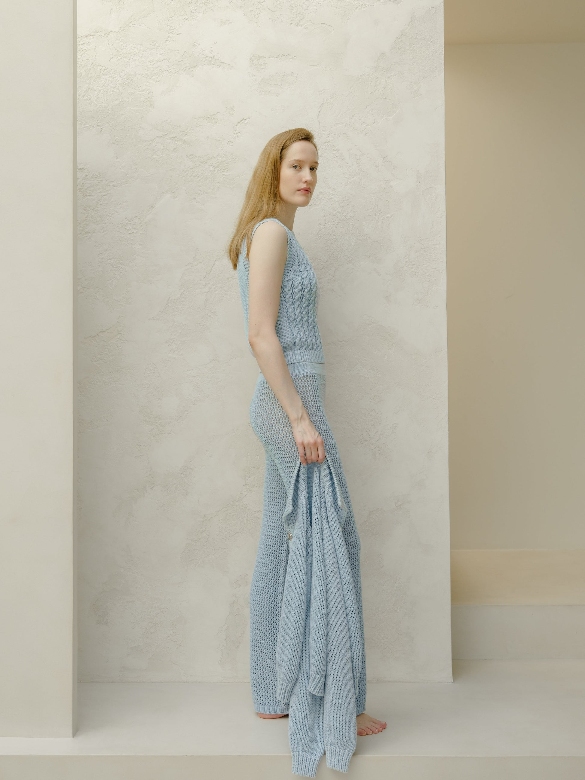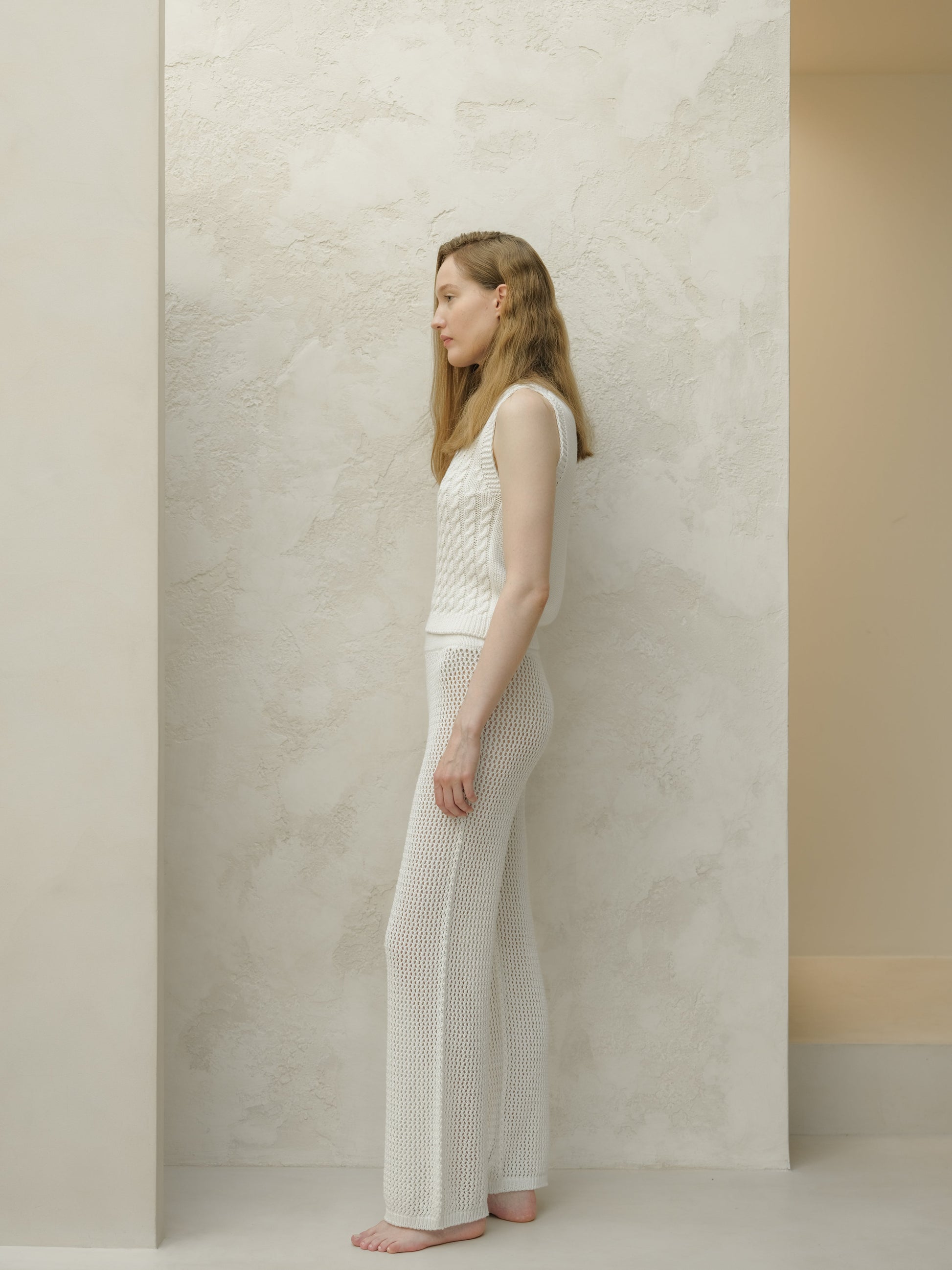 Relaxed and refined. These lightweight crochet pants are crafted from soft cotton with ribbed edges and an elasticated waistband for added comfort. The artisanal openwork adds subtle texture, making them ideal for quiet days by the sea or a walk through the city.
