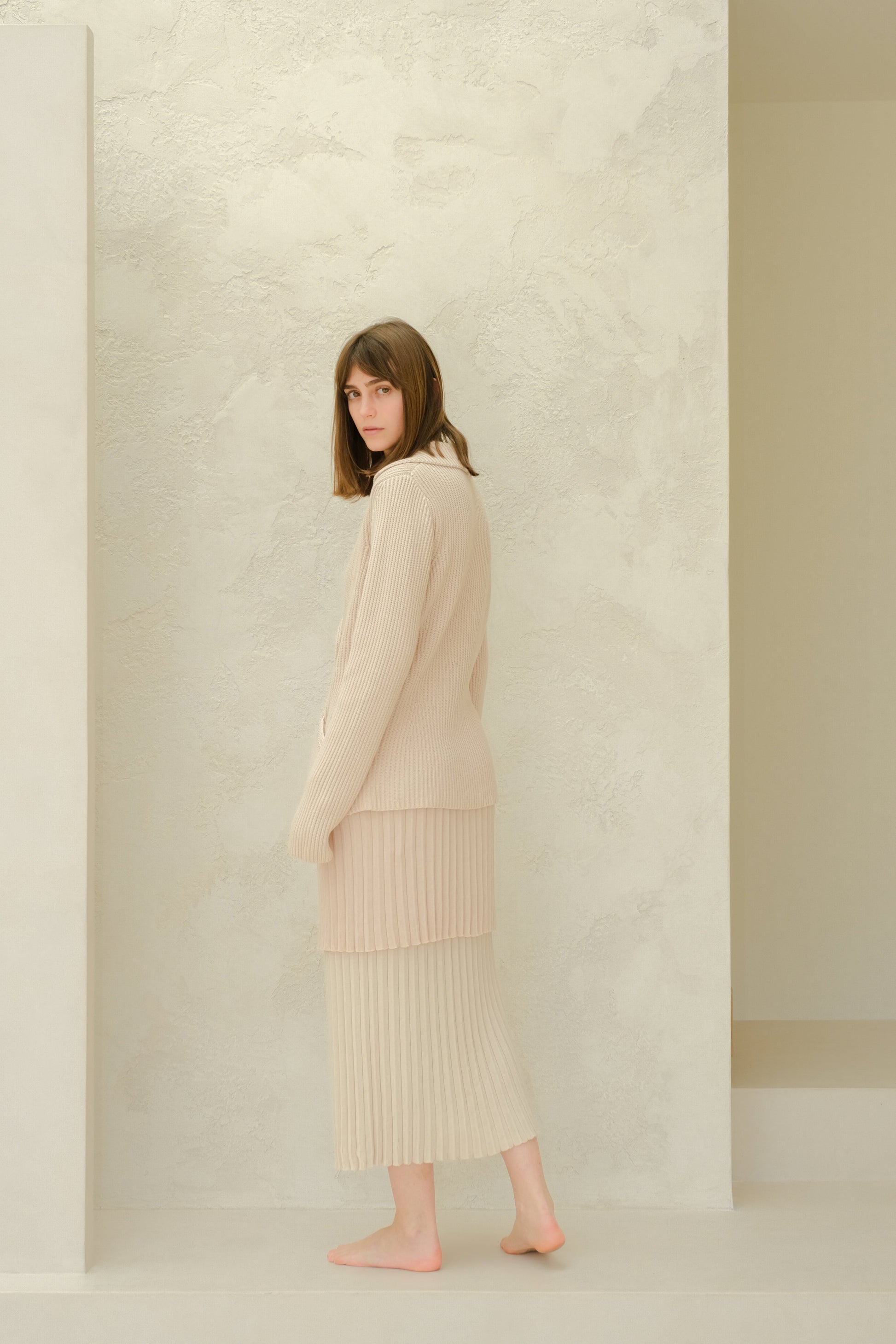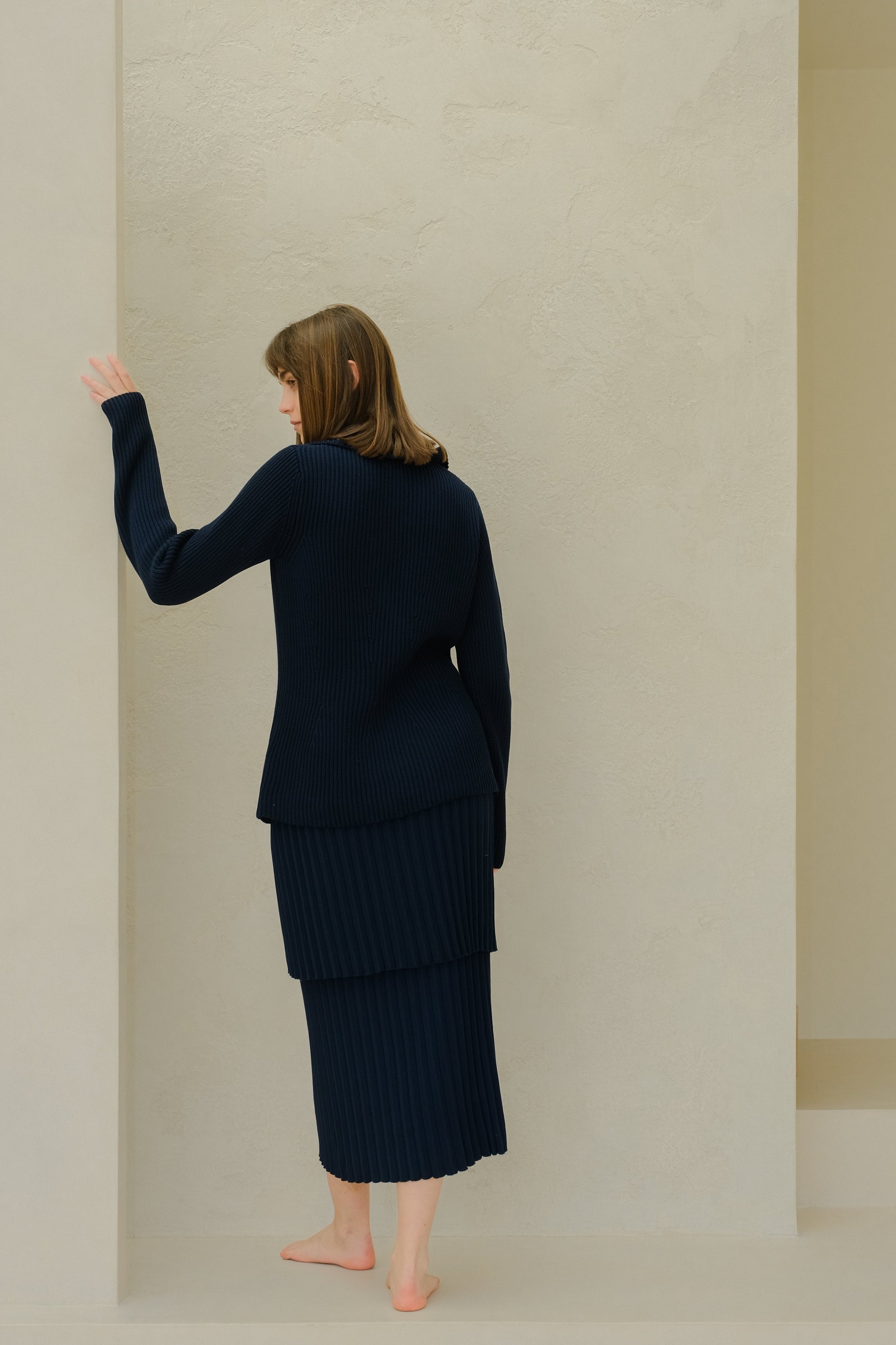 The savoir-faire of the double breasted jacket in a new knit version. This style combines elegance and comfort, freedom and movement, with a casual style that elevates allure. This must-have trascends fashions and generations, affirming its iconic status.