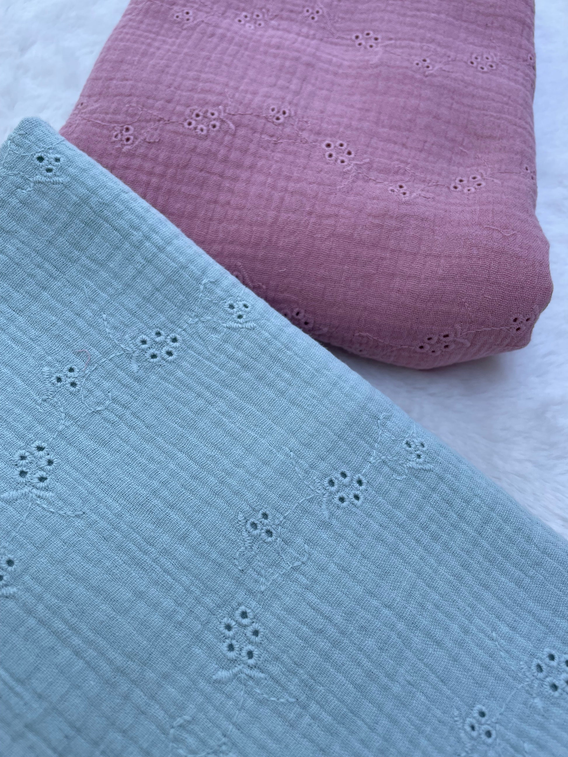 Un tessuto interamente ricamato con motivo sangallo, originale e raffinato mantenendo la versatilità della mussola!