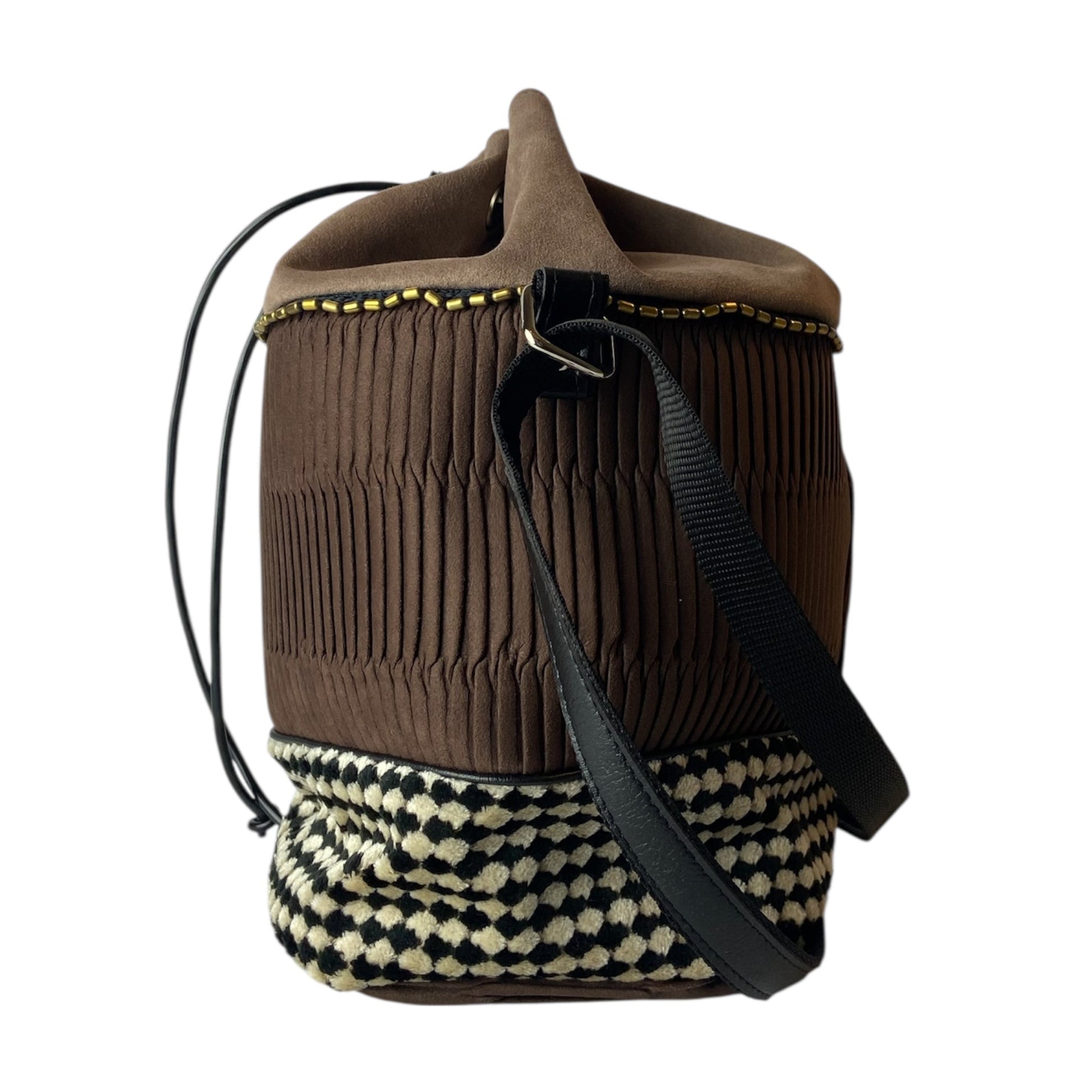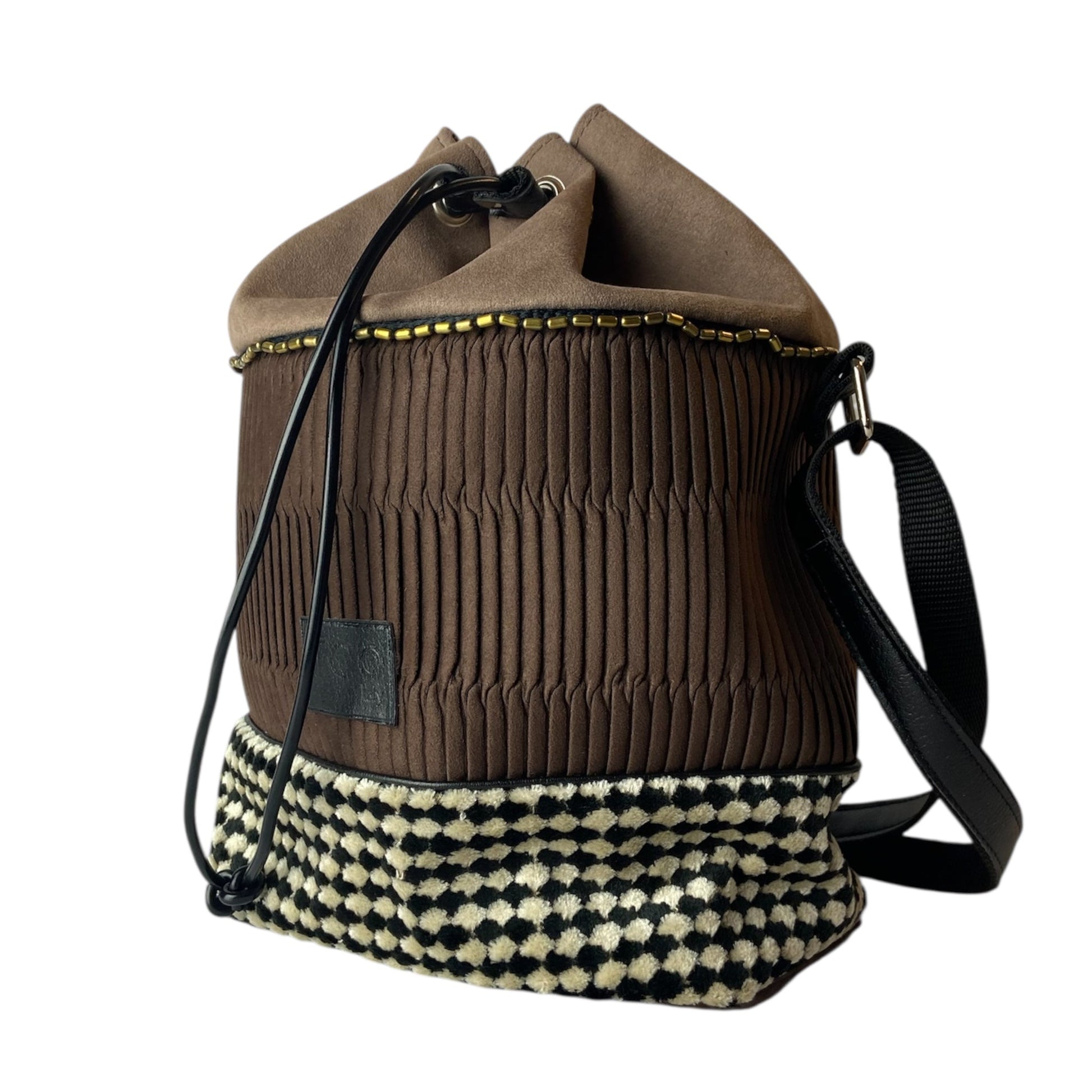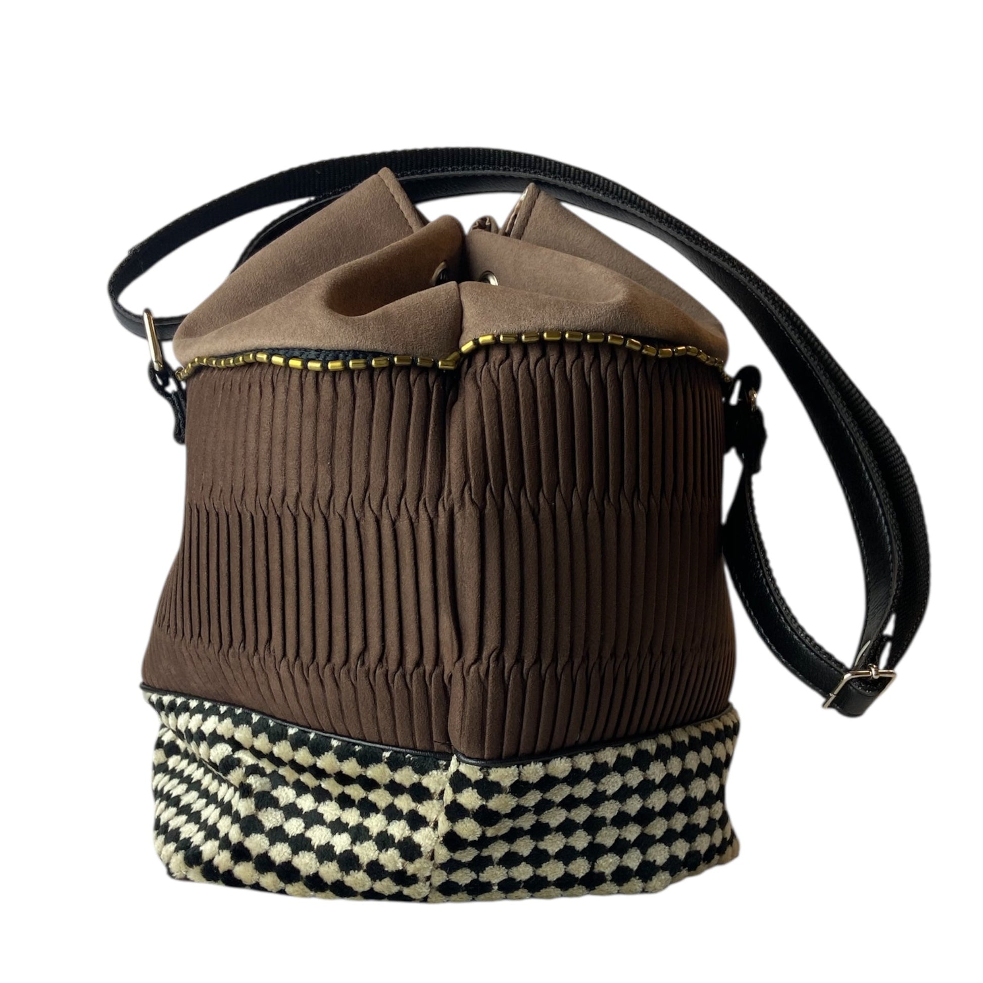 Secchiello Marrone & Pied de Poule - Borsa donna a tracolla