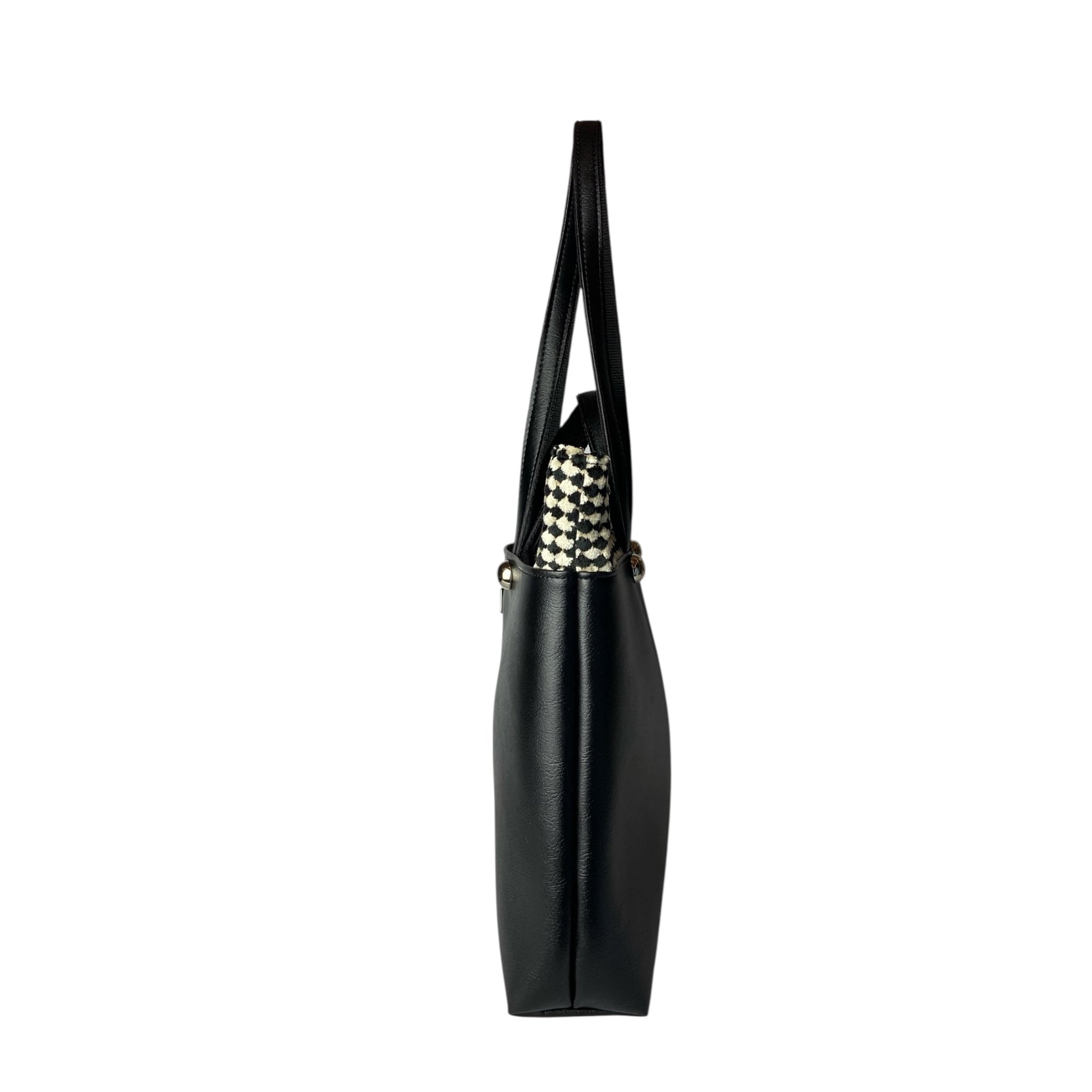Shopper Black & Pied de Poule - Borsa donna a mano e spalla