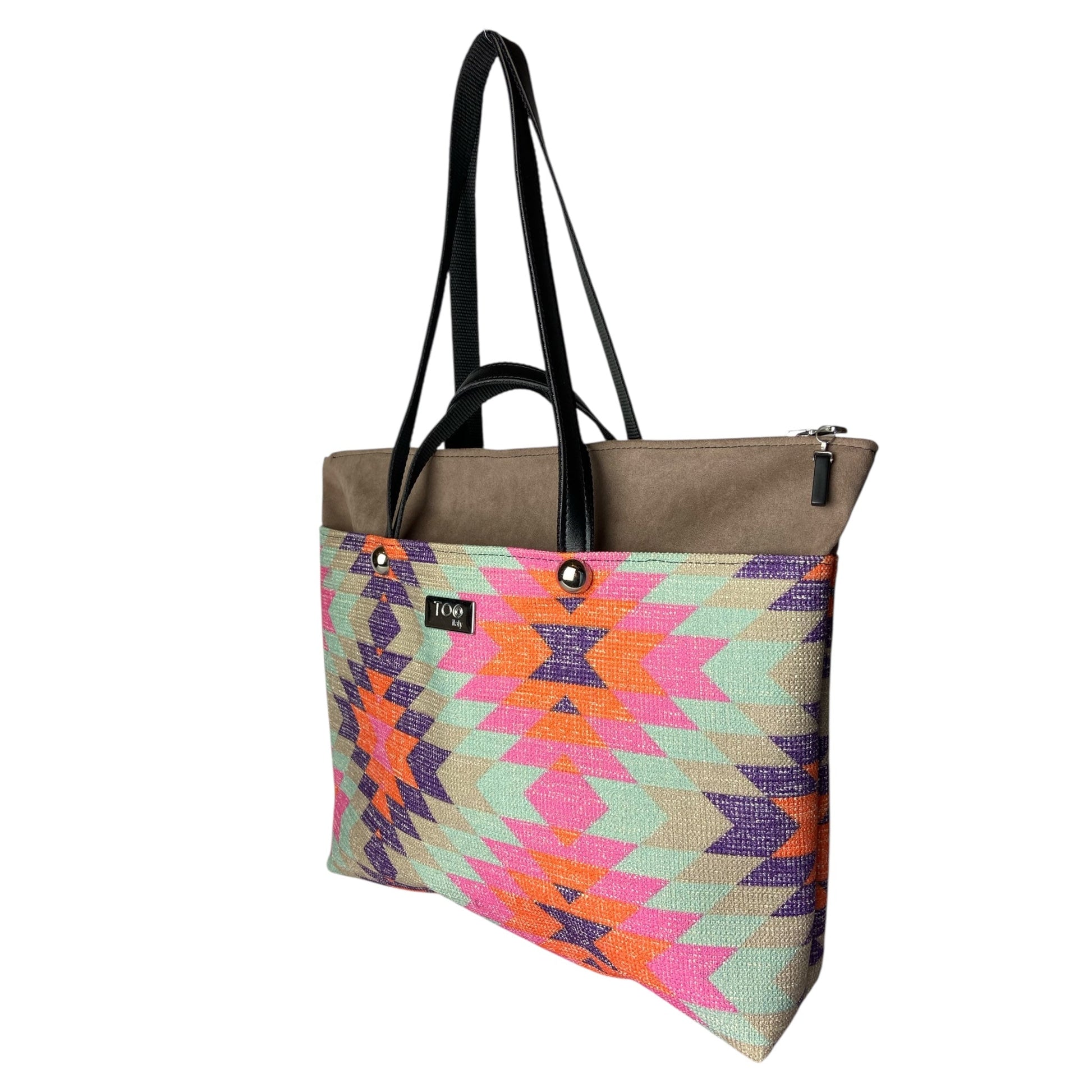Shopper Geo & Taupe - Borsa donna a mano e spalla