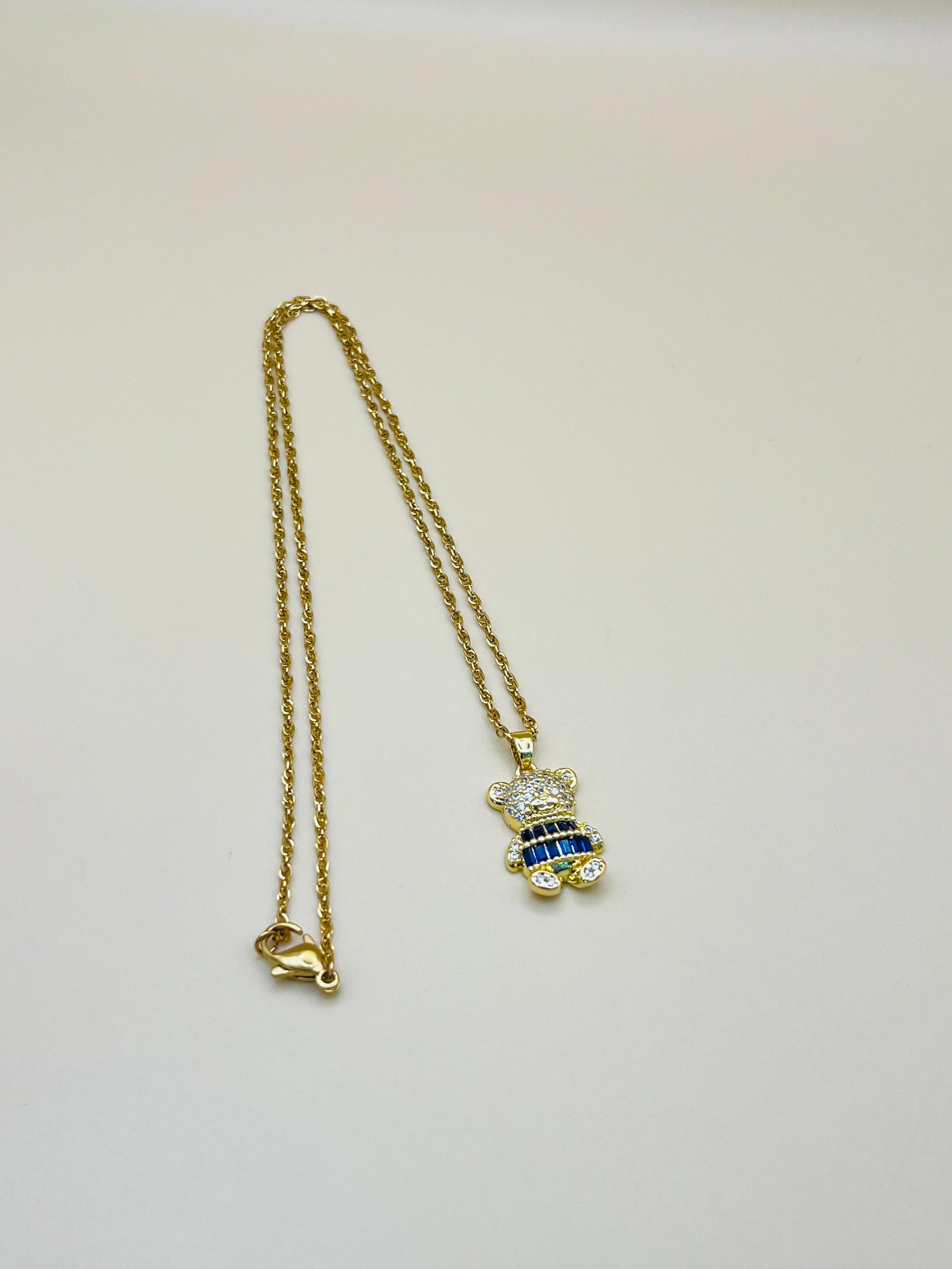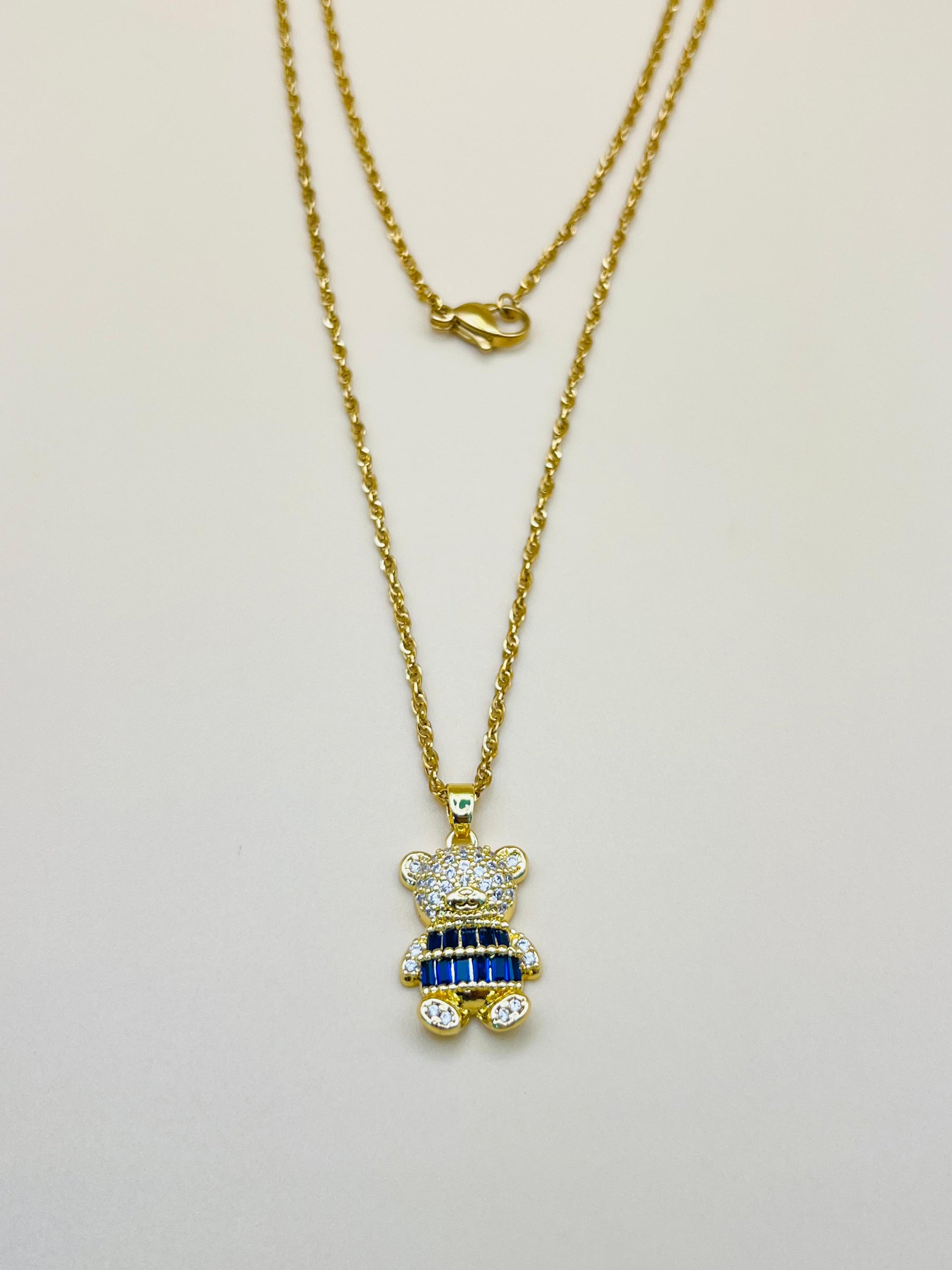 Teddy Elegance – Gold-Plated Necklace with Blue & White CZ Stones