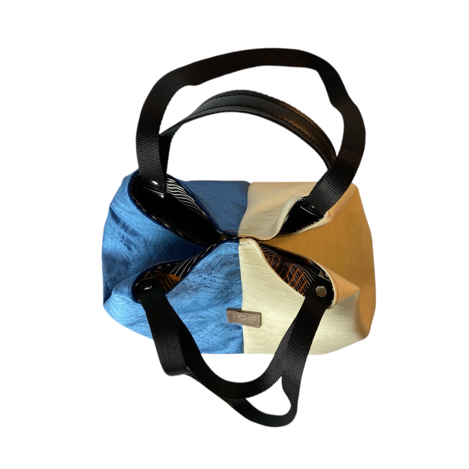 Tote Blue & Cream - Borsa donna a mano e a spalla